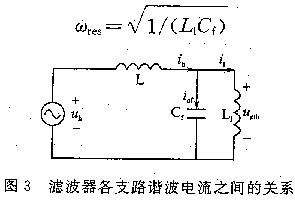 選擇濾波電感時首先要考慮到電感上基波壓降不能超過一定的范圍,一般要求濾波電感上的基波壓降不超過3%~5%。 (二)各支路諧波電流之間的關系 考慮高次諧波時,濾波器各支路電流方向定義如圖3所示。