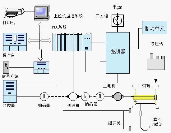 1.行業現狀 目前國內提升機電控絕大多數采用Burbund制動電阻分段控制的交流繞線式電機繼電器-接觸器系統,技術落后,存在的問題很多;例如:①Burbund制動電阻,消耗電能,造成能源浪費;②Burbund制動電阻分級切換,為有級調速,設備運行不平穩,容易引起電氣及機械沖擊;③繼電器、接觸器頻繁動作,電弧燒蝕觸點,影響接觸器使用壽命,維修成本較高;④交流繞線異步電動機的滑環存在接觸不良問題,容易引起設備事故;⑤不能達到穩定的低速爬行,最后導致停車位置不準,不能正常裝卸載。